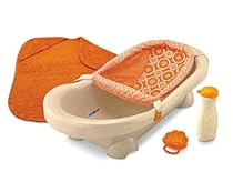 More details from amazon »Fisher-Price P9042 Review: Fisher-Price Dreamsicle Collection Bath Center, Tan/Orange. I read the previous review and agree with most of what was said, but I did want to put a positive spin on this item as I'm not displeased with it.My baby is almost 5 months old and is still able to use this item. He lays in the hammock, feet hanging over the side now, and when I want to wash his back and hair and then rinse him off, I just support his torso while he sits in the hammock. I did note that the hammock sits ... Full reviews at amazon »